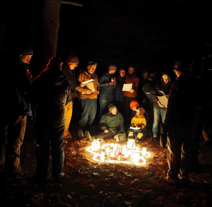- Solstice sing DON STRATTON LEADS a group in song during the annual Winter Solstice celebration at the Waterworks property in Bristol. This long-running celebration, co-sponsored by The Watershed Center and Vermont Family Forests, was held on Dec. 21 at the Norton Brook Reservoir. Festivities included a bonfire, potluck, music by Rick Ceballos and friends, community singing, and a bit of solstice pageantry. Photo courtesy of Jonathan Blake