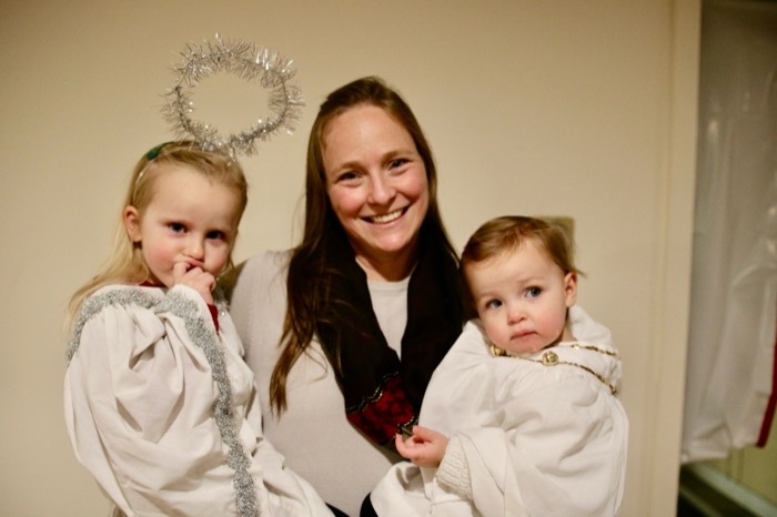 - Behold the star! AREA CHILDREN were a prominent part of last Sunday’s Christmas Family Eucharist service at St. Stephen’s Episcopal Church in Middlebury. Liz Smid gets her daughters Ettason, 3, and Josie, 1, dressed for the festivities. Independent photo/Steve James