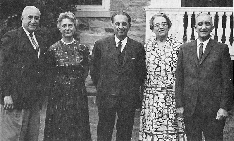 PROFESSORS SALVATORE (RIGHT) and Pierina (second from left) Castiglione, here with other Italian summer language school faculty, were respected and beloved members of the Middlebury College Italian summer school, the Italian School in Florence, and undergraduate Italian department from 1937 to 1975.
