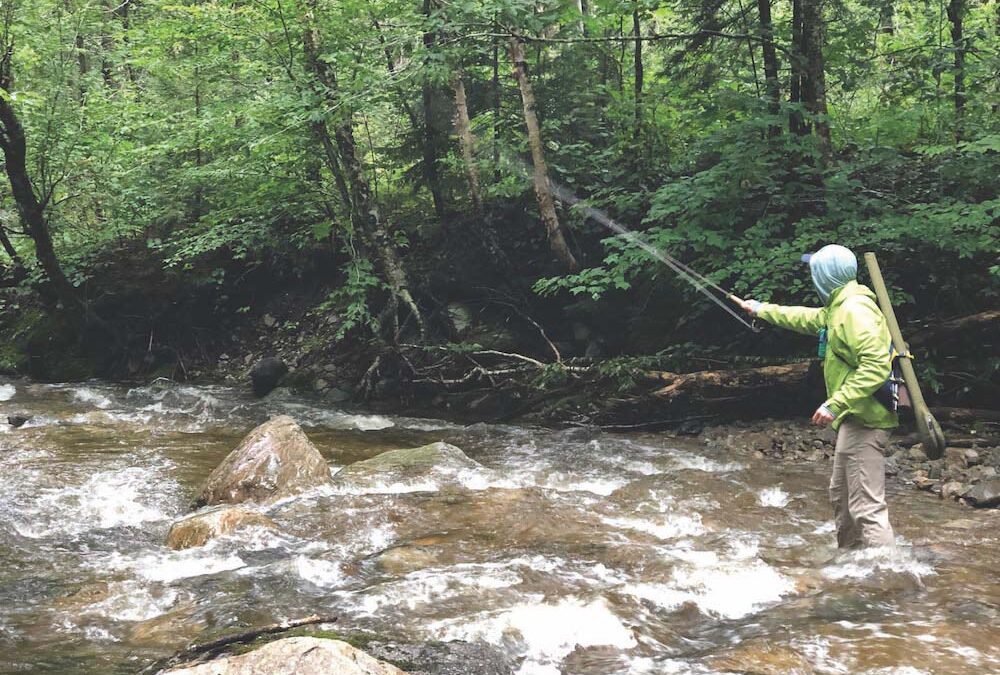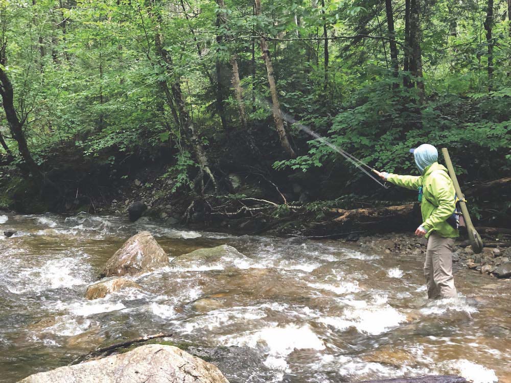 A DEDICATED FLY-FISHERMAN visiting from South Dakota, David O’Hara casts for trout in the roiling waters of a Green Mountain Forest stream this past weekend.