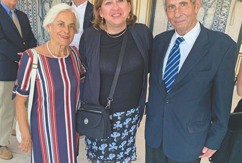 MIDDLEBURY UNION MIDDLE School educator Denise Bérubé stands between Teresa de Sousa Mendes and Aristides de Sousa Mendes — who bears the same name as his grandfather, one of the unsung heroes of World War II. The elder Aristides de Sousa Mendes, as Portuguese consul stationed in Bordeaux, France, issued thousands of visas to Jewish refugees trying to escape Nazi persecution. Bérubé retraced the steps of those refugees during a recent trip to Europe. Photo courtesy of Denise Bérubé