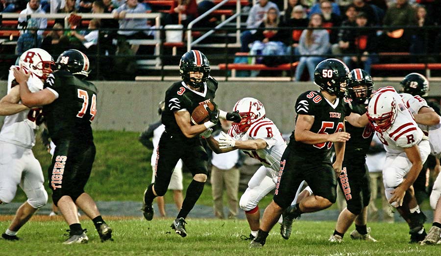 TIGER BACK JACKSON Gillett ran for three long touchdowns vs. Rutland on this past Thursday because of his speed and elusiveness, and because of the kind of blocking he got on this TD run from Tim Whitney (#74) and Aiden LaDuke (#50).