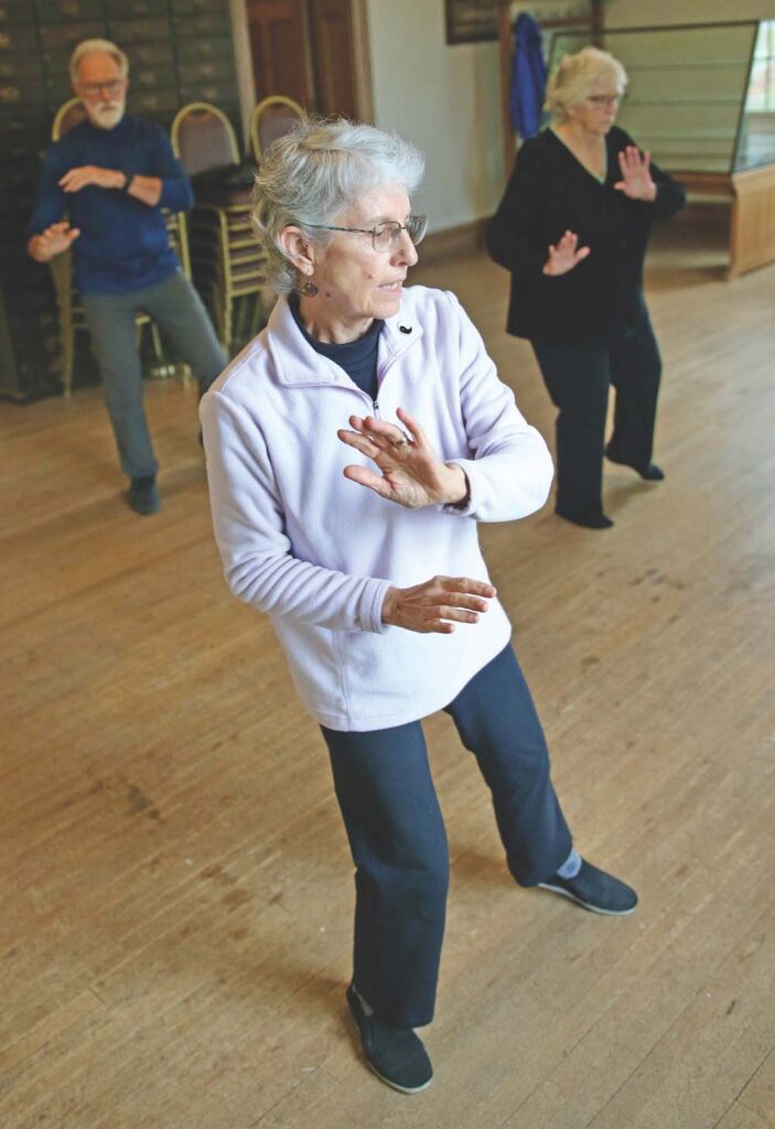 BOB MCGRATH OF Middlebury is one of several seniors learning tai chi at Bixby Library in Vergennes last week. The practice not only helps participants preserve balance and can help with arthritis and low back pain,it also provides a place for seniors to socialize.