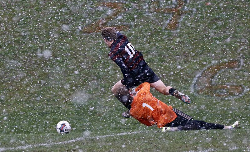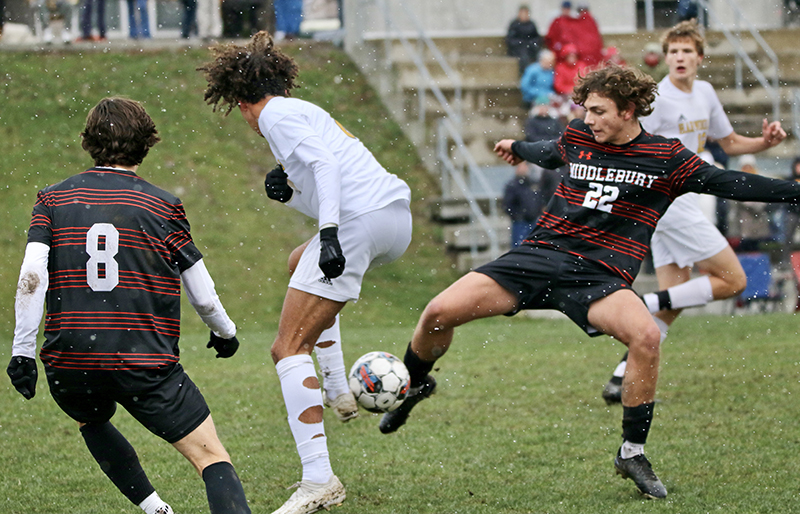 MIDDLEBURY — The No. 2 seed Middlebury Union High School boys’ soccer team’s dream of a Division II title crashed into a nightmare on Nov. 1 vs. visiting No. 3 Harwood in a snow-tinged semifinal.
