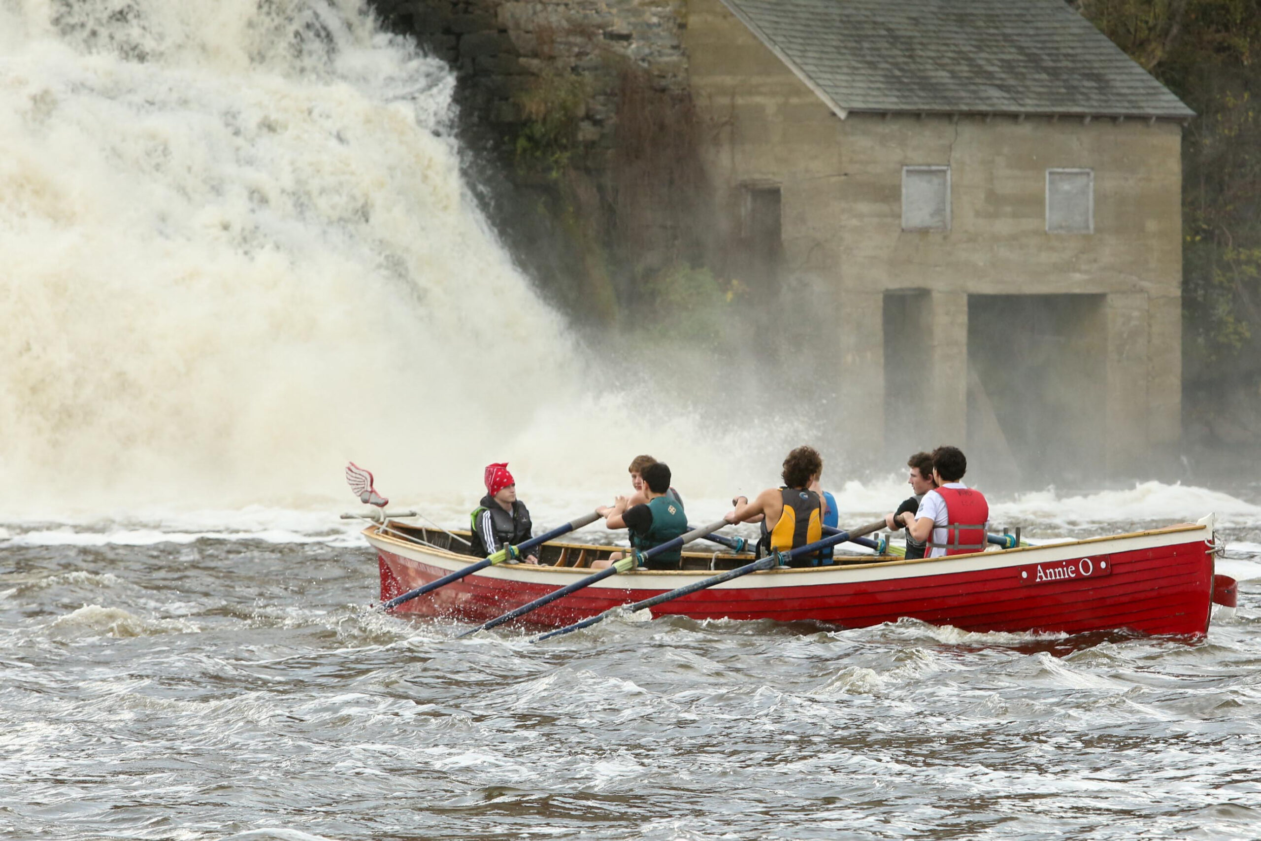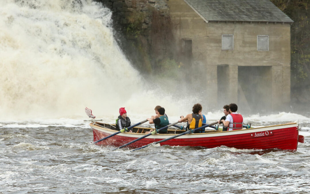 THE VERGENNES EXPERIENCED six team in “Annie O” at the base of the Falls during the Otter Creek Challenge Race on Oct. 28.