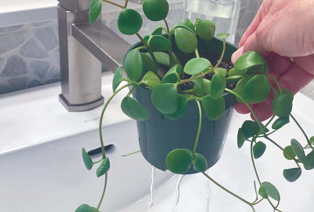 WATERING HOUSEPLANTS IN a sink until water flows out the bottom has an added benefit as any excess fertilizer salts that may have accumulated in the soil will be flushed away.