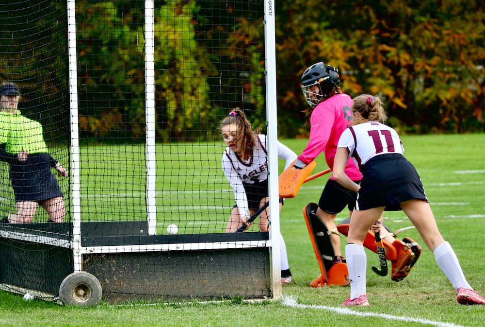 EAGLE JUNIOR HAILEE Allen flicked home the goal that proved to be the game-winner during the Mount Abe field hockey team’s home playoff win over Brattleboro on Oct. 24. A slick pass from senior center mid Morgan Barnard set up the score.