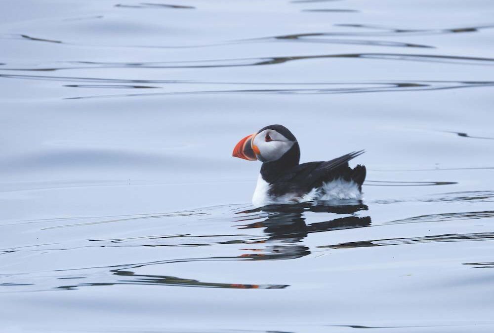 AN ATLANTIC PUFFIN enjoys the waters off Hog Island on the coast of Maine. Otter Creek Audubon Society is offering scholarships for an educator and a teen interested in attending a session there in the summer of 2024.