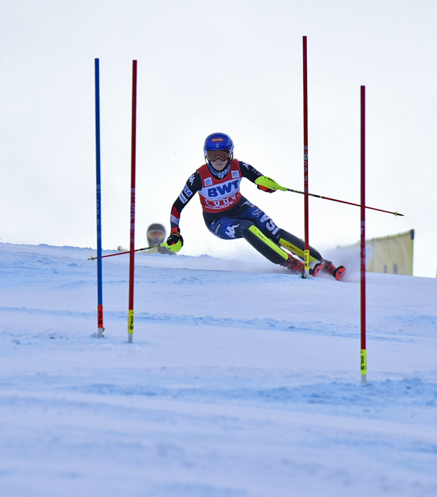 Then on Sunday, in what racers and spectators alike described as near-perfect skiing in near-perfect conditions, she not only won both runs in the slalom race, but on her second run just nipped second-place finisher Petra Vhlova of Slovakia by a combined 0.33 to take her 90th World Cup win.