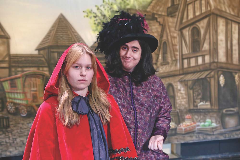 LITTLE RED RIDING Hood, portrayed by Ella Kozak, and Benjo Torres, aka Dame Drippington, are two in a cast of 13 players in the ART production of “Adrian: The Alternative Panto,” a slapstick musical comedy to be staged at the Hannaford Career Center this Friday, Dec. 15, and Saturday, Dec. 16.