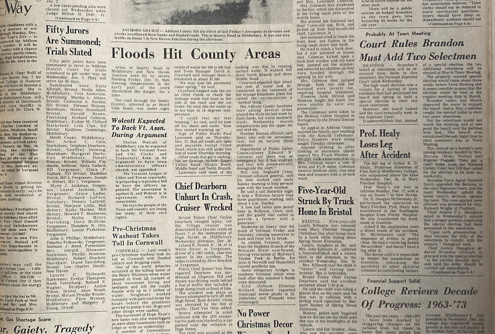 While Addison County residents today are no strangers to extreme and unusual weather after this year’s summer floods and unseasonably warm winter, locals fifty years ago faced weather challenges of their own.