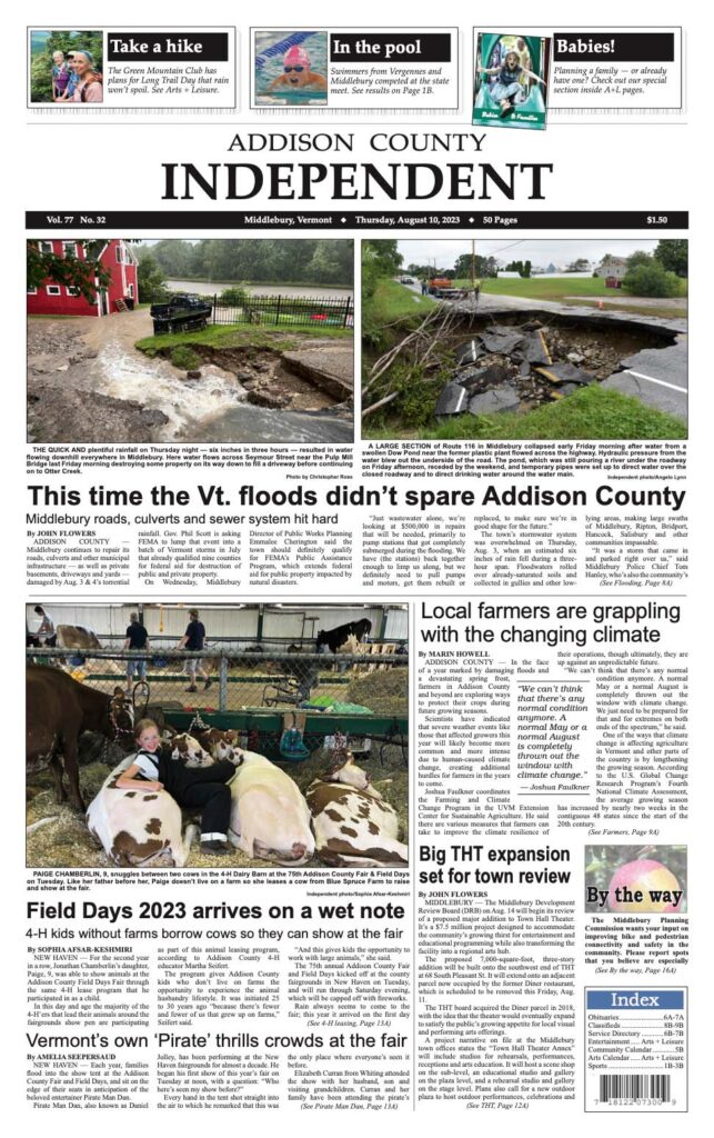 THE FRONT PAGE of the Addison Independent on Aug. 10, 2023