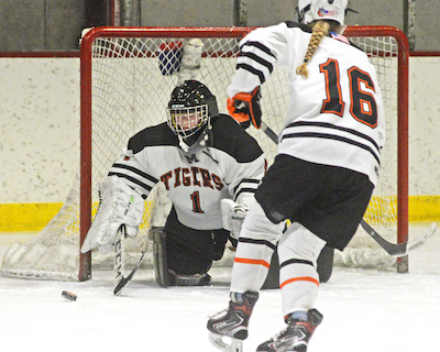 Tiger girls’ hockey skates well against the Wolves, but falls, 3-1