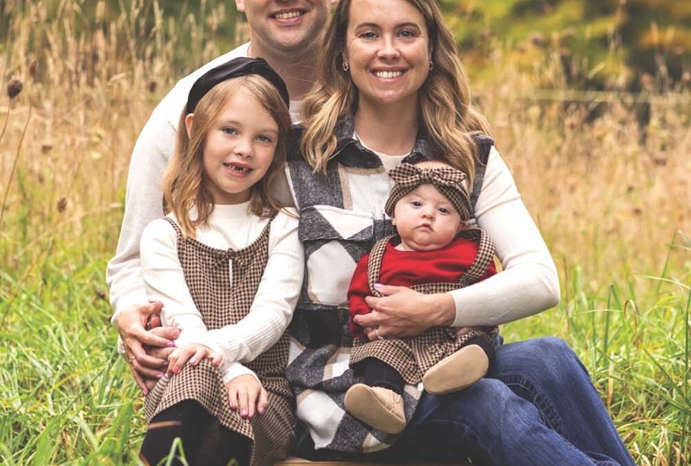 DEMITRIA KIRBY AND her husband, Jim, pose for a family photo with their daughters, Beatrice and Cecilia. Kirby is seeking a kidney donation after suffering birth complications this past July that severely damaged her kidneys.
