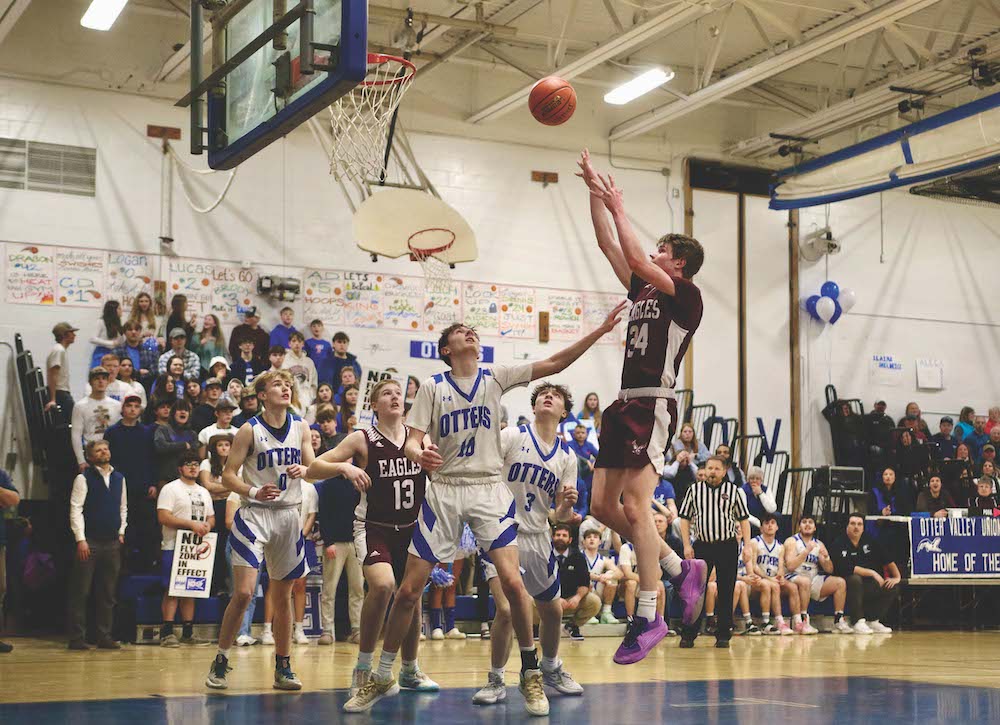 The Otters slowly stretched the lead to 41-21 at 2:25 of the third quarter. Thomas scored twice, Mark Jackson came off the bench for three points, and Aiden Decker hit a free throw. A Jacob Prouty three-point play and a Funke bucket answered for the Eagles. OV still led by 20, 49-29, after three.