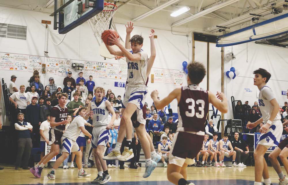 EAGLE JUNIOR GUARD Hayden Lutz goes up for a layup during Tuesday’s first-round playoff game at Otter Valley.