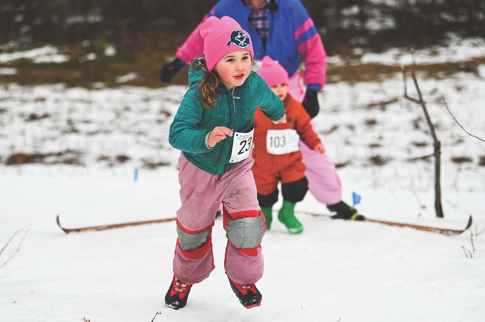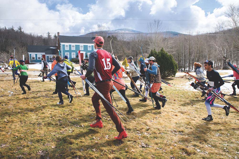 50 SKIERS TAKE off in the grassy meadow for the 7.5 km and 15 km race at the 2024 Blueberry Hill Outdoor Center Pig Race, a revival of a fun community race that started in 1972.