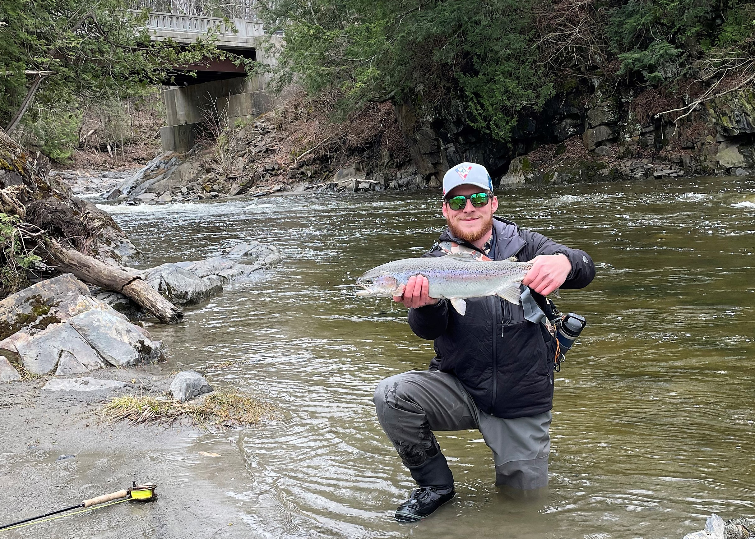 Good adds that finding a small to medium low-elevation river or stream that is not too murky from spring runoff can be key. Trout are coldblooded and may be slow to bite especially with low water temperatures, so it is important that they can also see your bait, lure or fly.