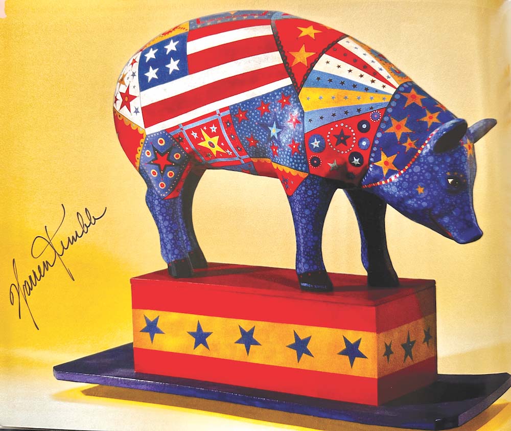 Renowned artist and Brandon resident Warren Kimble made a huge splash in the 1990s putting his distinctive twist on 19th-century folk-art styles, creating a whimsical world of white New England houses and wildly proportioned farm animals. One of those animals turned out to have more significance in his life, and to Brandon as a whole, than he probably anticipated: the pig.