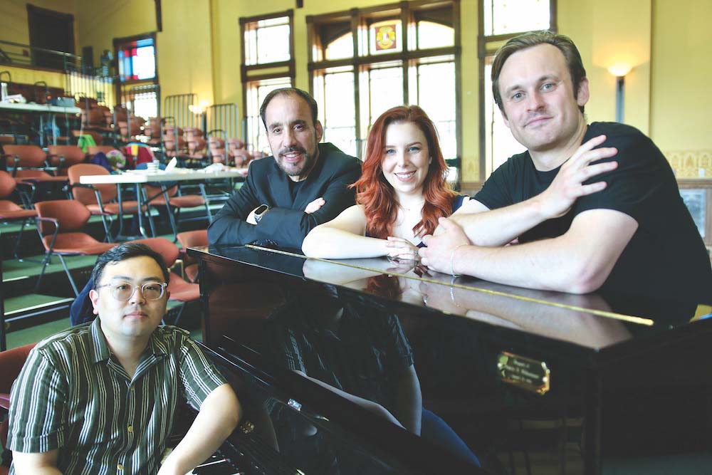 Richard Bernstein, Sarah LeMesh and Patrick Bessenbacher (pictured from left to right above and to the left) rehearse with pianist Yihao Zhou for the upcoming performance of “La Fille du Regiment” at Middlebury’s Town Hall Theater. This Opera