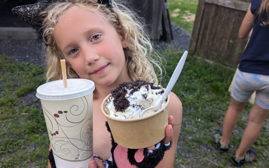 And Middlebury is now bustling with ice cream options: Chim Chimney Bakery opened earlier this summer, and Shiretown always has a fun new special. Yogurt City is a topping-lover’s dream. Vermont Maple Market does a perfect maple creemee, and A&W is a great place to get a root beer float or a sundae and watch your kids cartwheel in the grass.