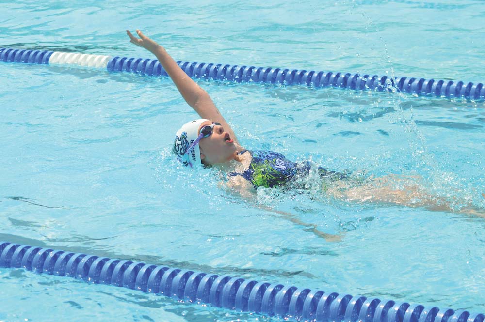 CHAMP U-12 SWIMMER Juliette Angier slices through the water in the backstroke the CVSL championship meet this past weekend in Winooski.