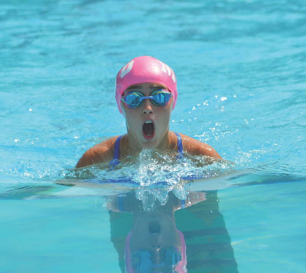 MARLIN U-12 SWIMMER Camry Miner comes up for air while competing in the breaststroke during the CVSL championship meet this past weekend in Winooski.
