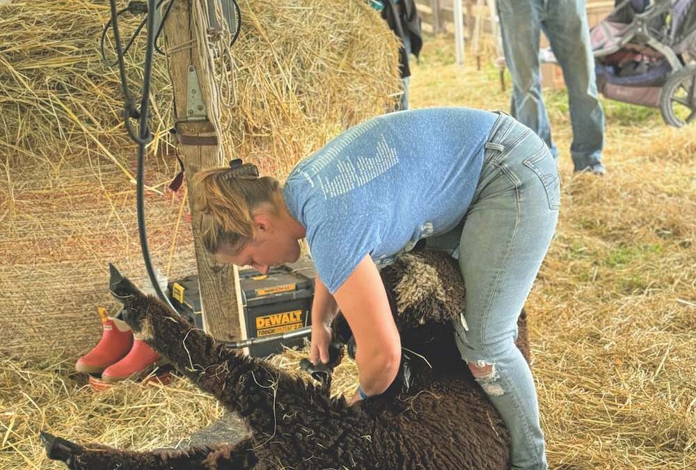Shearing sheep at the fair is hard work