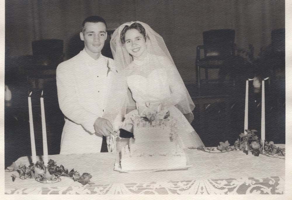 LEONARD AND ANN ROWELL happily cut their wedding cake on the big day back in the summer of 1959.