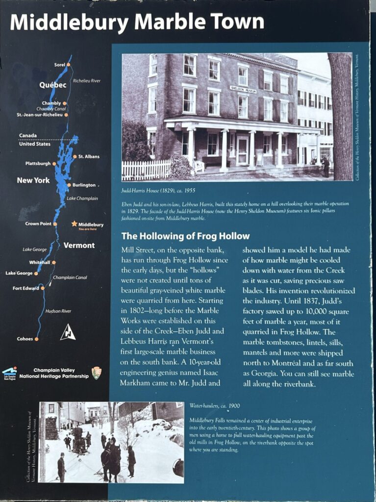 The district is narrowly defined to an irregular circular area just outside the core of the downtown. It includes just past the roundabout to the southwest, includes the Marbleworks Business District, Gregs Market, Middlebury Discount Beverage, RK Miles, and Danforth Pewters; the Swift House at Elm Street to the Sunoco Station (near Mary Hogan Elementary School) to the south; and Shaw’s shopping complex, and Milne Travel on Washington Street.