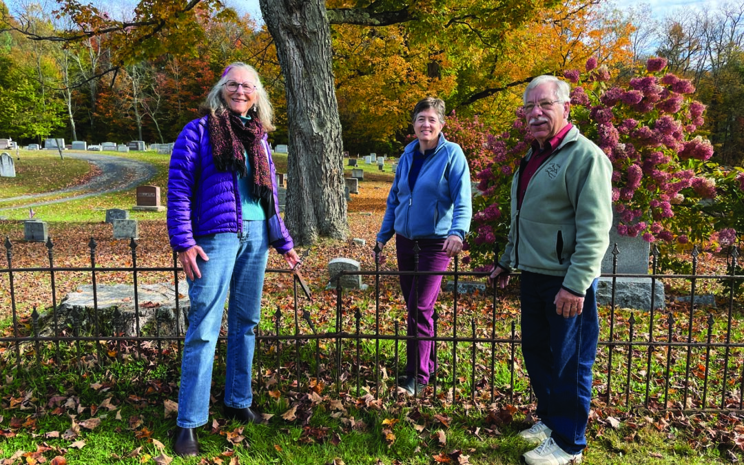 A GROUP OF Lincoln residents is seeking to fix up the 117-year-old fence surrounding Maple Cemetery. Here, Lincoln resident Alison Parker (left), Lincoln Cemetery Association President Judy Brown and Lincoln Cemetery Association member Dave Wood stand by a corroded piece of the aging fence.