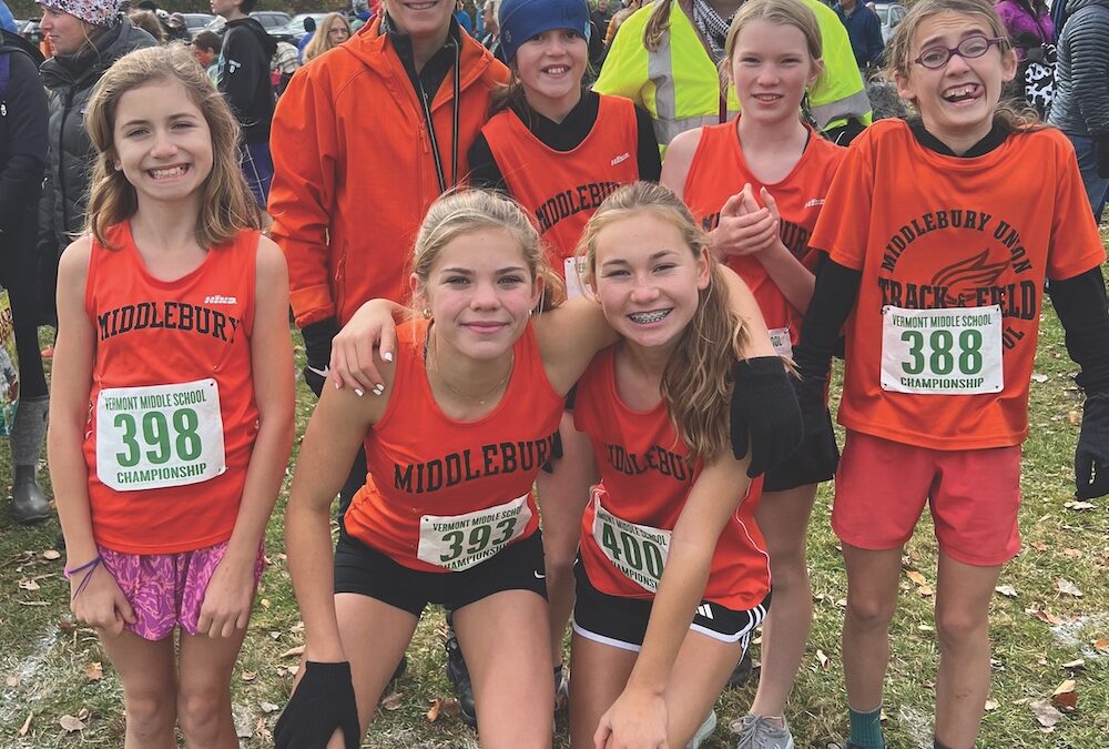 ST. ALBANS — The Middlebury Union Middle School cross country teams enjoyed outstanding days at the middle school championship meet on Oct. 27 at the Hard’ack Recreation Area in St. Albans, with the girls’ team finishing first among 28 scoring teams, while the MUMS boys were seventh. In all, 600 athletes from 44 schools competed.