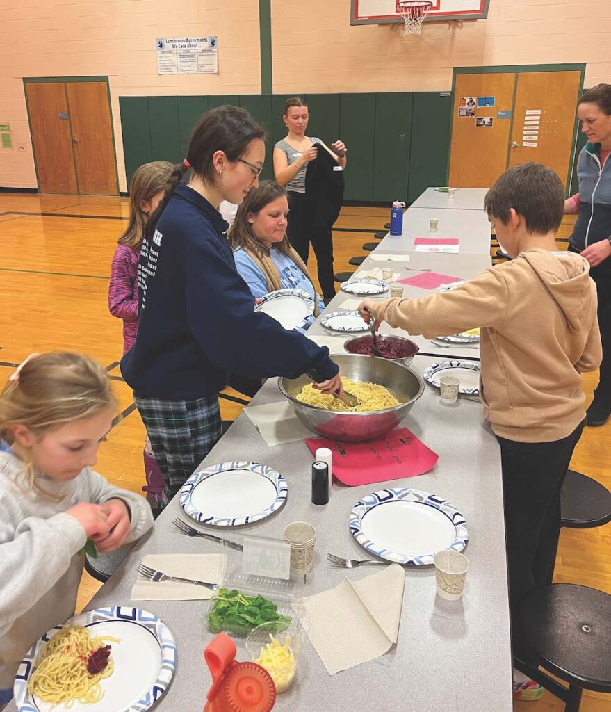 MARY HOGAN ELEMENTARY School students and their families whip up beet pesto pasta during a Nutrition Outreach and Mentoring cooking session this past spring. Such cooking experiences are designed to introduce students to different local foods and teach them about all that goes into preparing a nutritious meal.