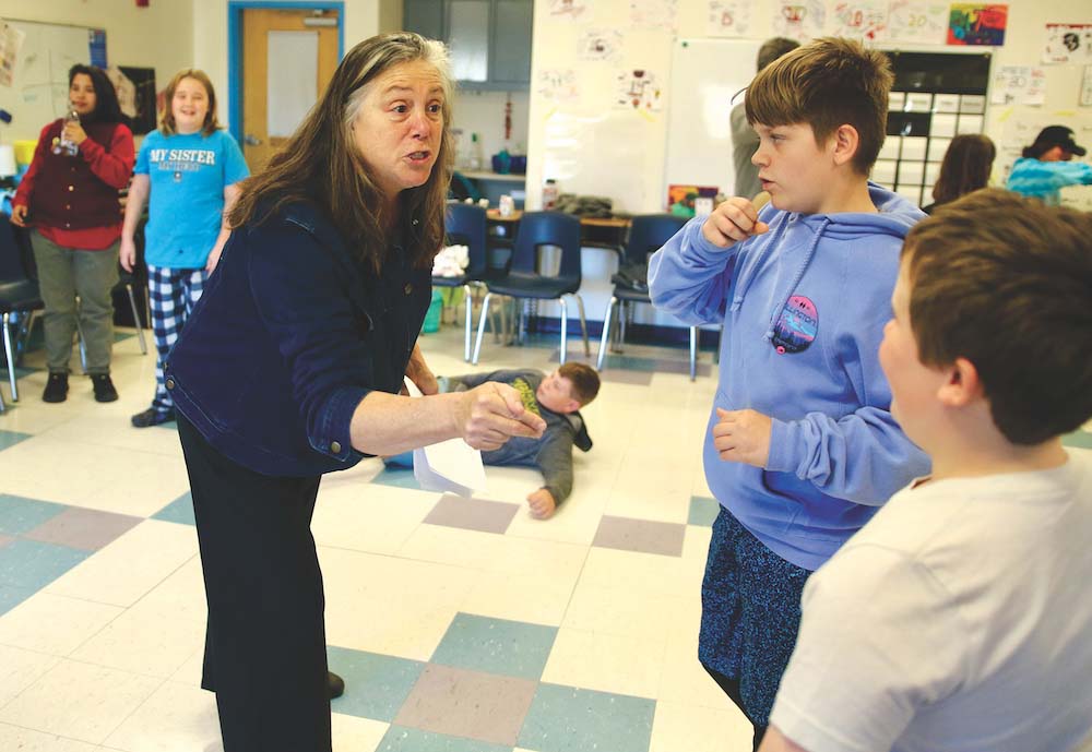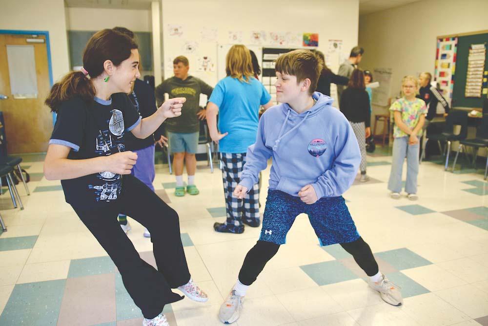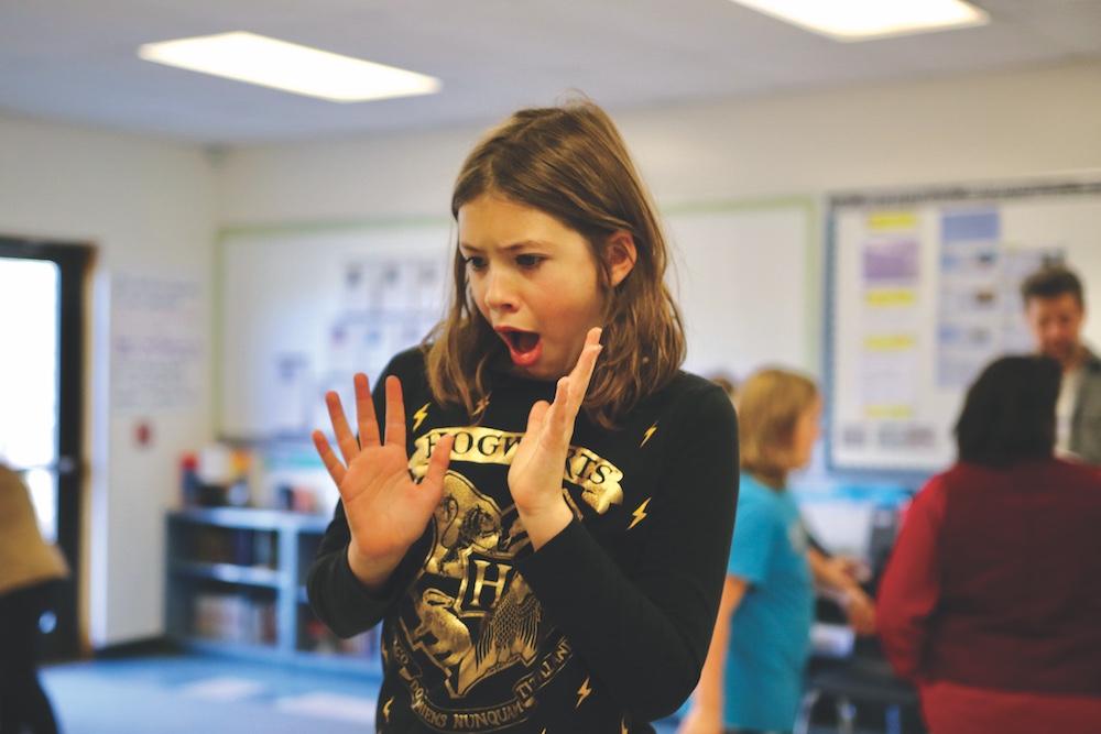 MARY HOGAN FIFTH-grader Matilda Boyce rehearses a scene from “Romeo and Juliet” in class last week. The students are preparing for the culminating event of the Courageous