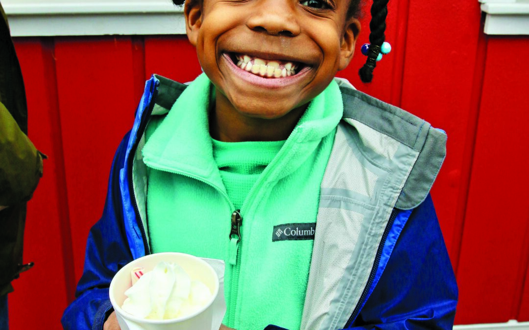 AMAYA MORGAN OF Panton is quite pleased to get a warm, sweet drink from the Hot Cocoa Hut in Middlebury’s Cannon Park this past December during the Very Merry Middlebury activities. The Hot Cocoa Hut returns to Middlebury this holiday season.