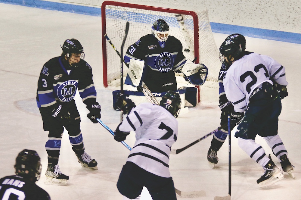Marian threatened early, but Heinze snagged Robert Pizzey’s hard wrister from just inside the left faceoff dot.