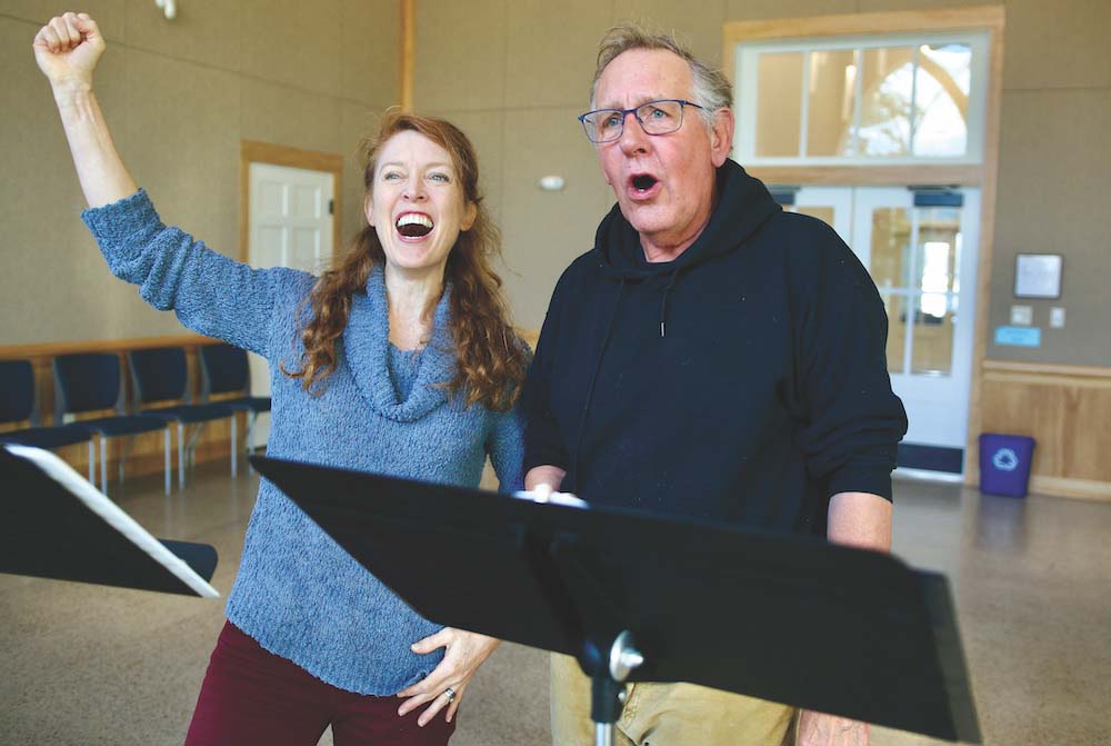 ELISA VANDUYNE AND Bill Carmichael Walsh rehearse at the Congregational Church in Middlebury with pianist Ronnie Romano (not pictured). The annual spectacular took the stage at the Vergennes Opera House on Dec. 6 and 7.