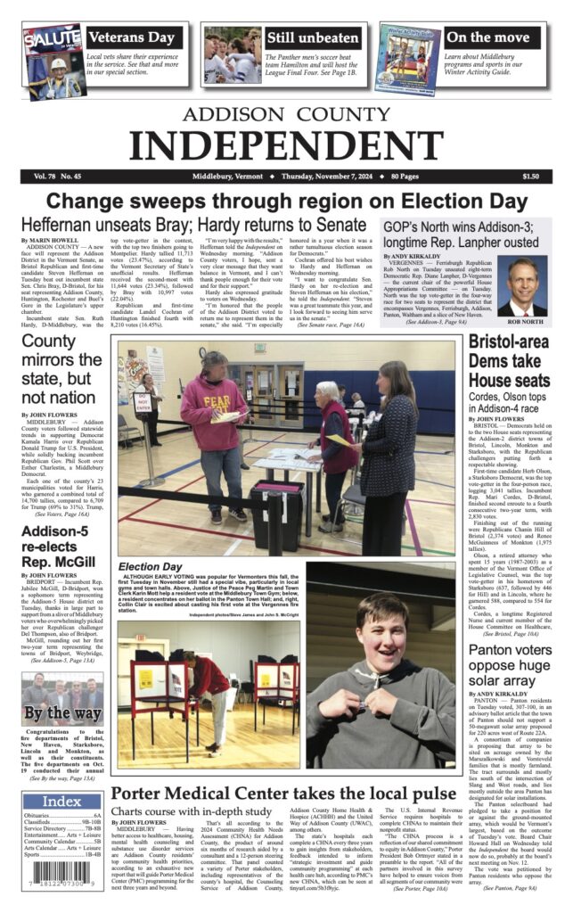 Politically, Addison County has been solidly blue for the past 20 years. In 2022, Democrats accomplished something they’d never done before: They won every one of Addison County’s nine seats in the Vermont House and both its seats in the state Senate.