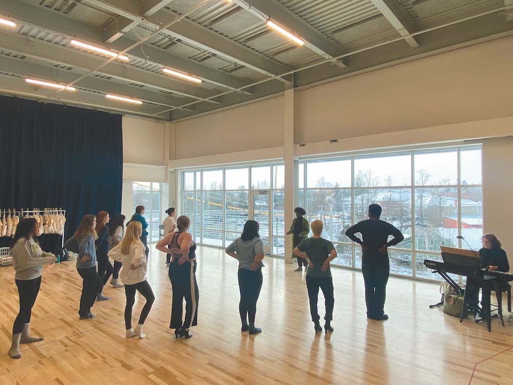 STUDENTS IN MIDDLEBURY College’s J-Term musical class rehearse in the Doug and Debbie Anderson Studio in the new wing of the Town Hall Theater with choreographer Christal Brown. The student cast and crew will present four performances of “Guys and Dolls” at the Town Hall Theater beginning Jan. 25.