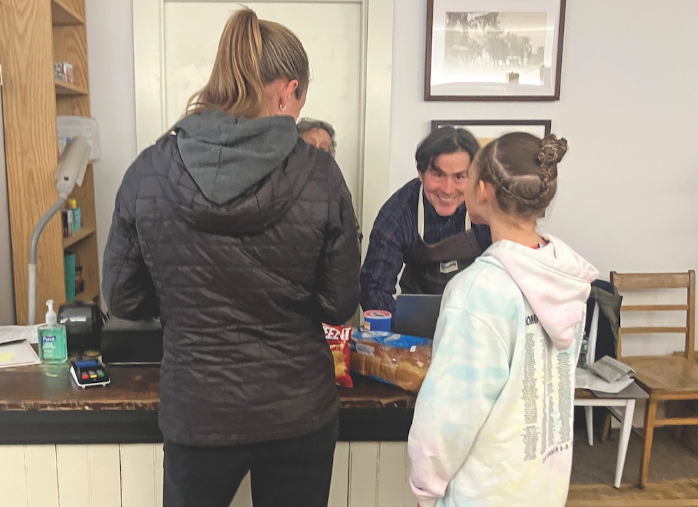 WHITING GENERAL STORE owner Garrett Law smiles as he rings up a sale to 11-year-old Bailey Wilbur, right, and her mom, Tiffany, this past Friday.