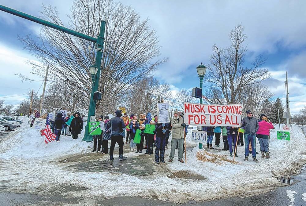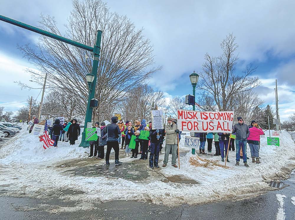 Monday saw several hundred local people recognize Presidents Day, an official federal holiday, by protesting the work of President Donald Trump and his increasingly powerful asssociate, Elon Musk.