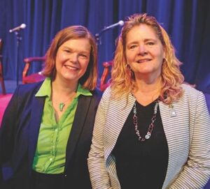civic forum Ruth Hardy wit Secretary of State Sarah Copeland-Hanzas_