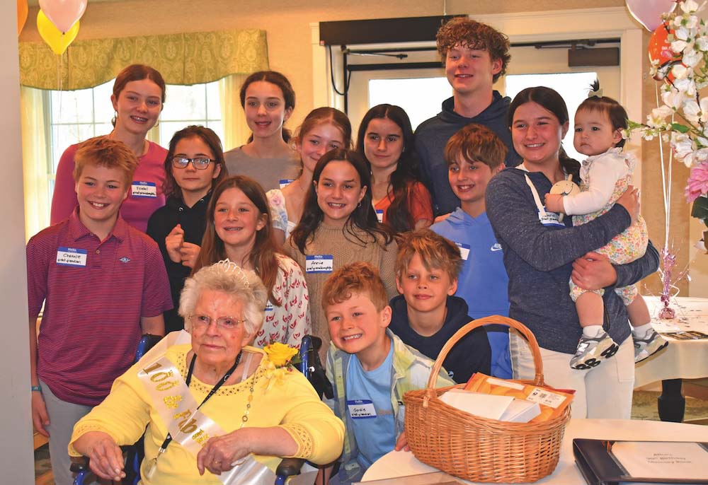 MANY OF ALICE Perine’s grandchildren and great-grandchildren late last month joined in her birthday party held at Eastview at Middlebury when Perine turned 100 years old.
