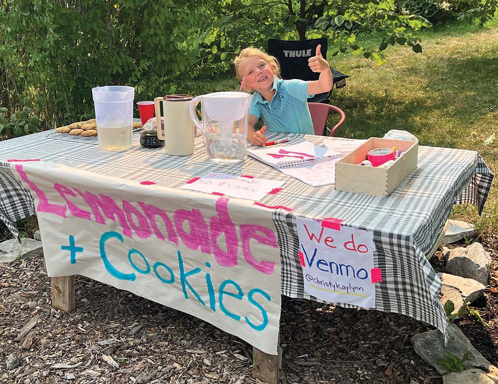 THIS MIDDLEBURY 6-YEAR-OLD found out how much fun it is (and profitable) to make and sell lemonade to his neighbors.