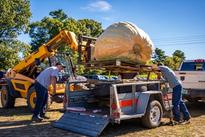 James Beane’s 1,814-pound giant pumpkin took first prize at Sam Mazza’s annual giant pumpkin weigh-off in Colchester.