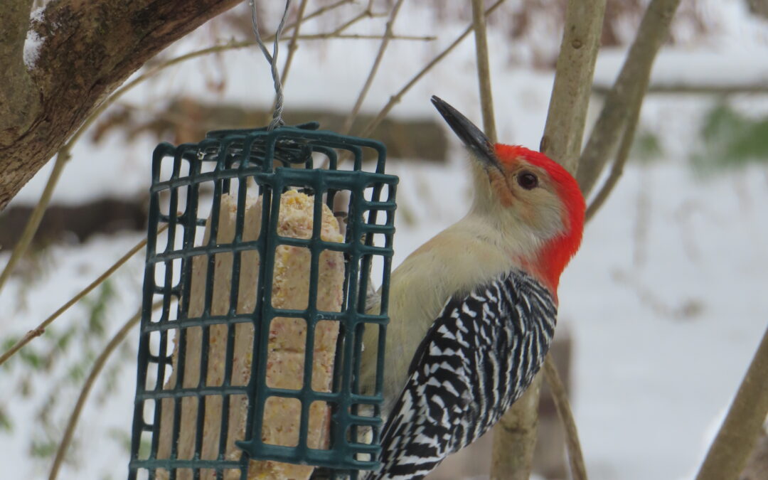 BIRD FEEDERS, WHETHER a traditional seed dispenser or a suet feeder like this one serving a red-bellied woodpecker in Weybridge, offer an easy and safe way to interact with wildlife. Installing them after Dec. 1 limits the potential to attract bears, keeping you and the birds safe.