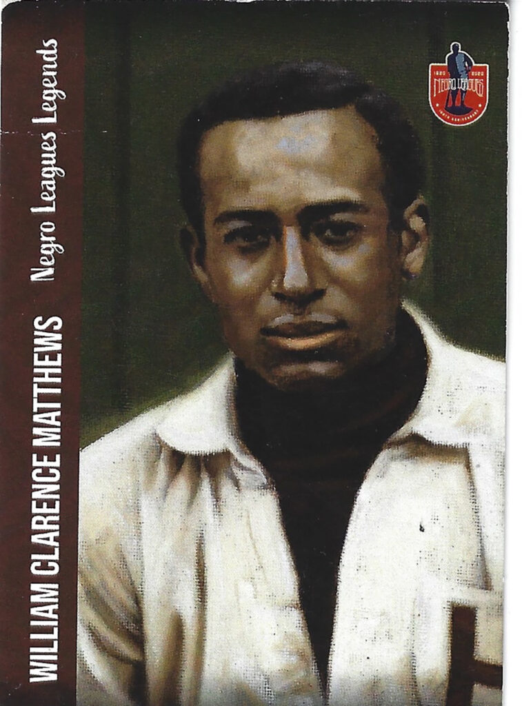 William Clarence Matthews was a great player for Harvard College in the early 1900s. He is depicted here by artist Graig Kreindler and is part of the Negro Leagues Centennial Legends card set.