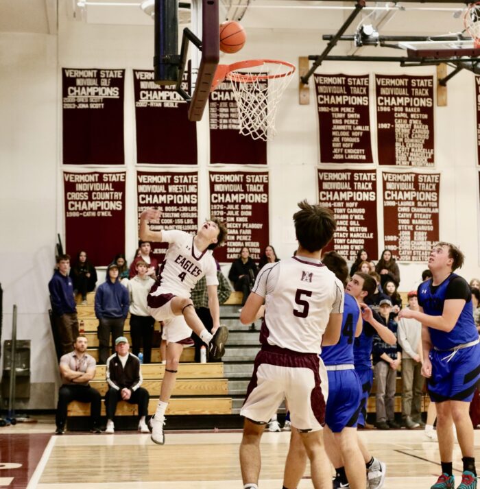 Then Mount Abe blitzed the Otters with a 23-9 second quarter in which four Eagles combined for 21 points: senior guard Charlie Germon (seven points) and three sophomore guards, Noah Germon (six points) and Dustin Abbott and Waydon Cherington (four apiece). They did most of the damage by attacking the basket, although the Germon brothers also each hit a three-pointer.