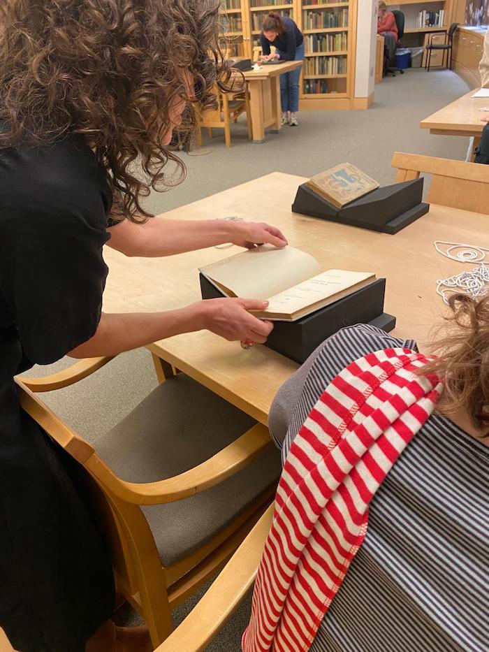 J-TERM STUDENTS EXAMINE historical cookbooks in Davis Family Library’s Special Collections as part of a winter term course on “Endangered Food” taught by Alexa Duchesneau.