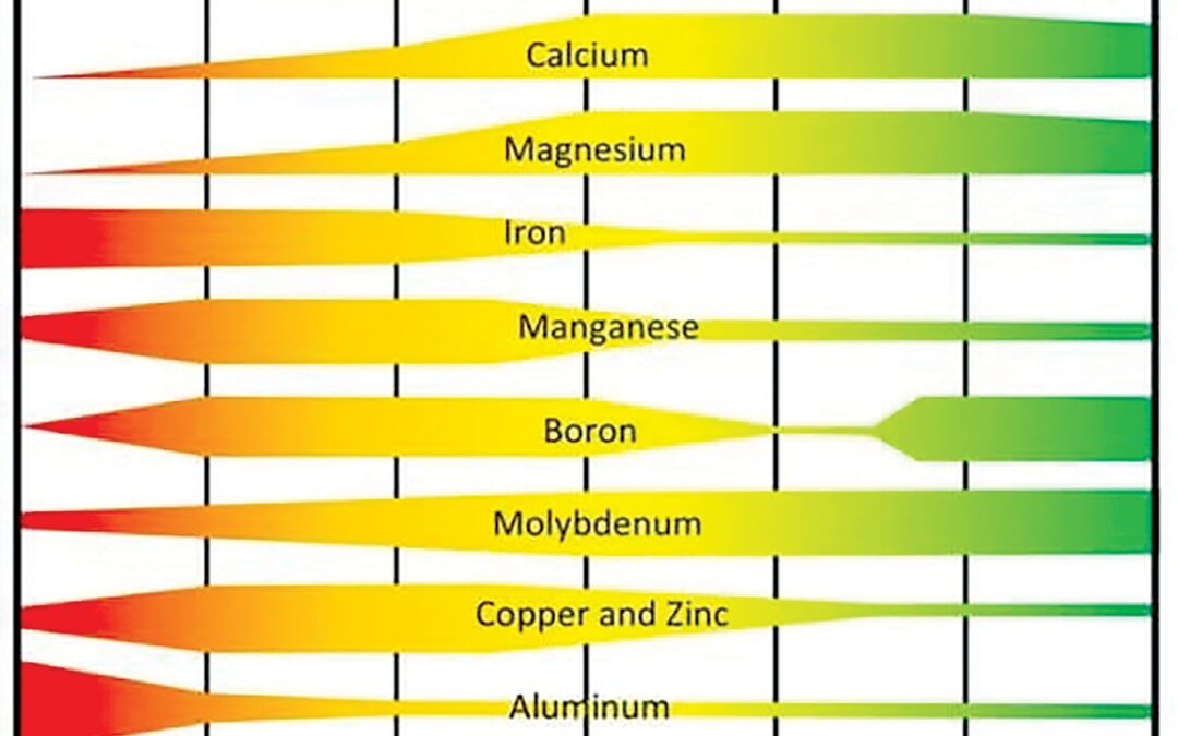 Soil pH affects nutrient availability as illustrated in this chart where the thicker the area, the greater availability across a range of soil pH. Image courtesy of Washington State University Extension